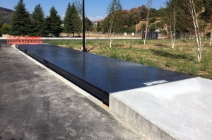• Superfície de rodagem em chapa lagrimada de aço de alta espessura