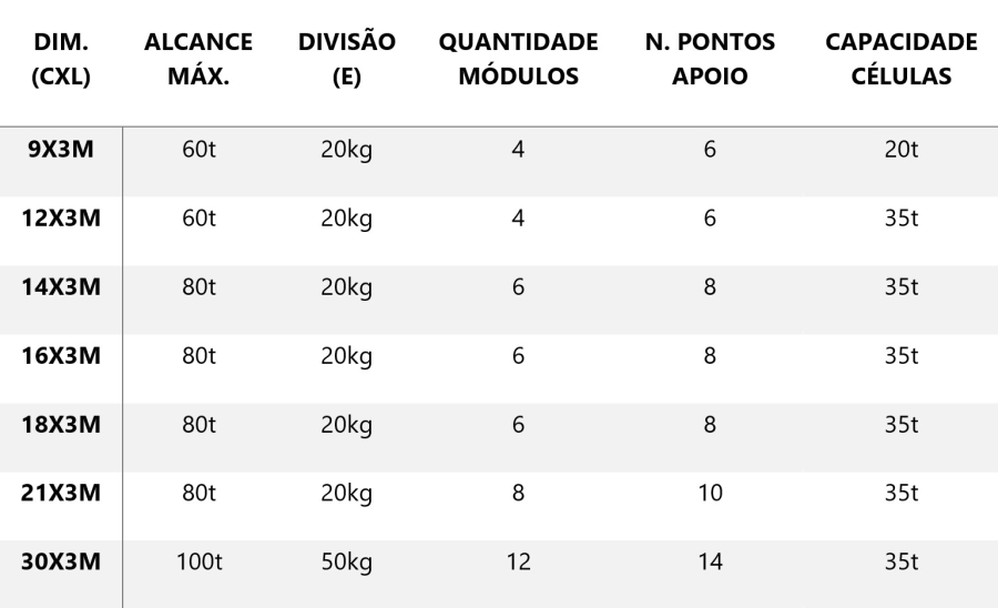 - Acesso às células de carga e caixa de ligações através das tampas amovíveis na superfície de rodagem
