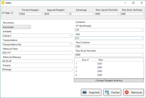 No final do processo, é impresso um talão detalhado, com o número de eixos, peso por eixo, peso total do veículo, identificação do operador, data, hora e outros elementos relevantes.